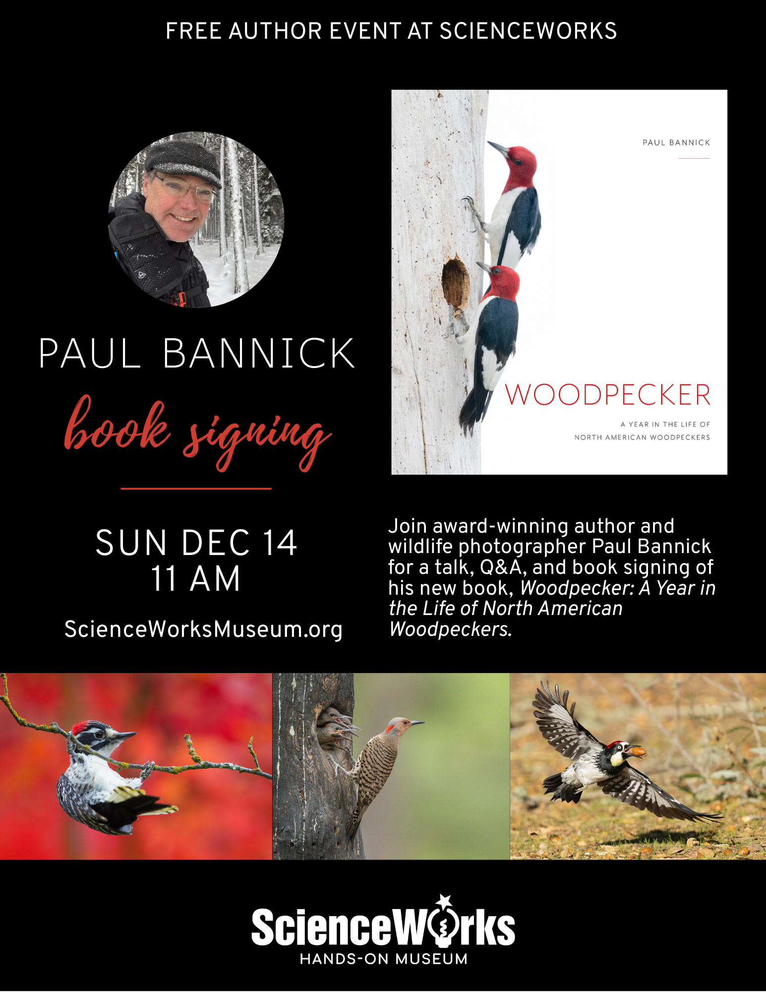 Author Paul Bannick explores the often secret lives of woodpeckers from Alaska’s boreal forests to the oak woodlands of the West and Midwest and from the ribbon of Ponderosa Pine