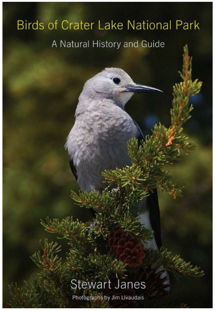 Crater Lake National Park mesmerizes thousands of visitors each year with its stunning vistas, nat-ural beauty, and wildlife, including the extraordinary birds that are found there. In Birds of Crater Lake National Park, Stewart Janes introduces readers to Oregon’s high country birds and those that are most frequently encountered on visits to the park. The high country is a hostile environment; the birds that live there confront challenges—elevation, weather, geology, habi-tat—that their lowland relatives do not have to endure. Species that inhabit the high country must be adaptable and resourceful. Book photography by Rogue Valley Audubon Society member, Jim Livaudais.